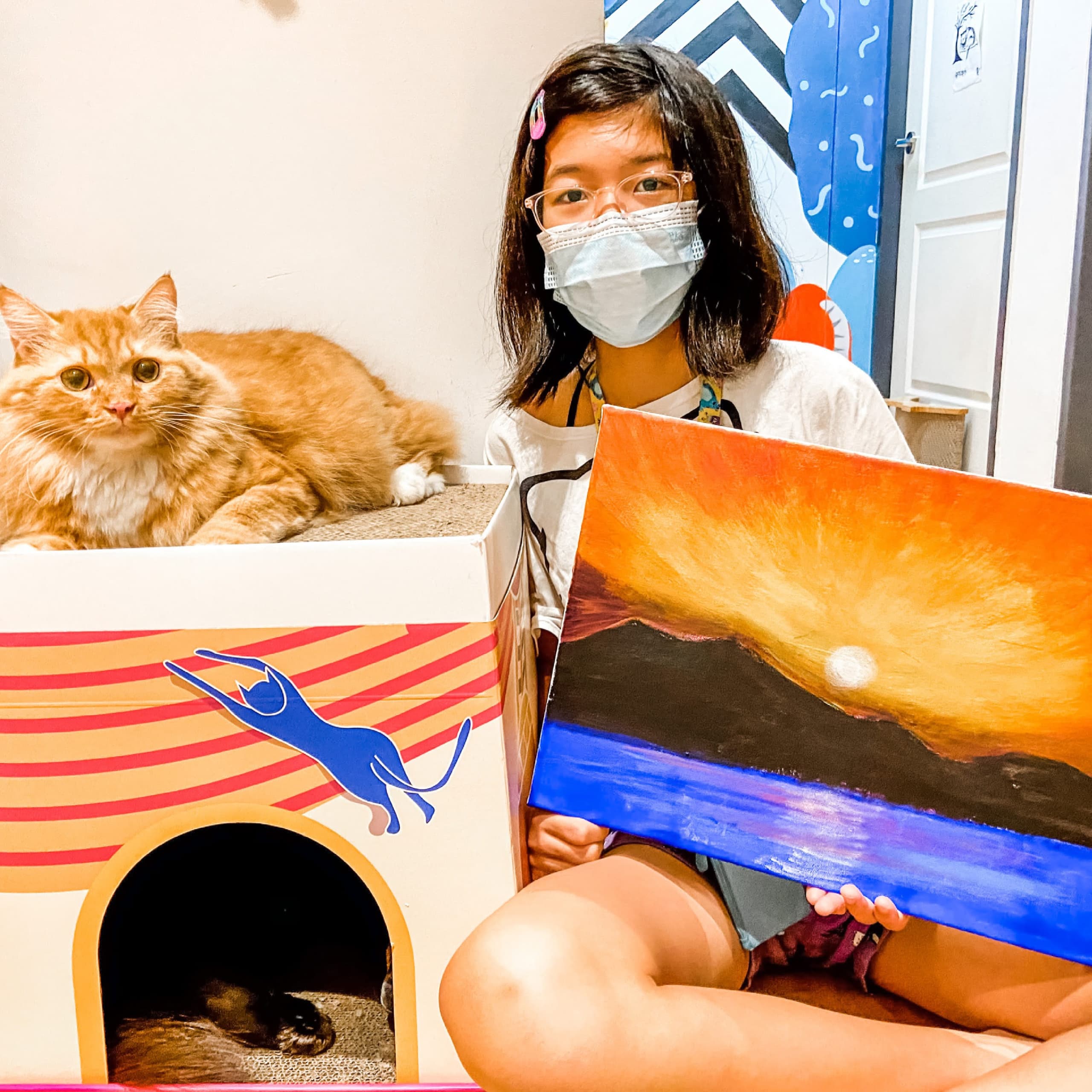To further enhance one’s experience within an art jamming session, Amanda Cho of Wildflower Studios invites her cats to hang out and attend to participants in the studio. She refers to these as her Cat-Art jamming sessions.